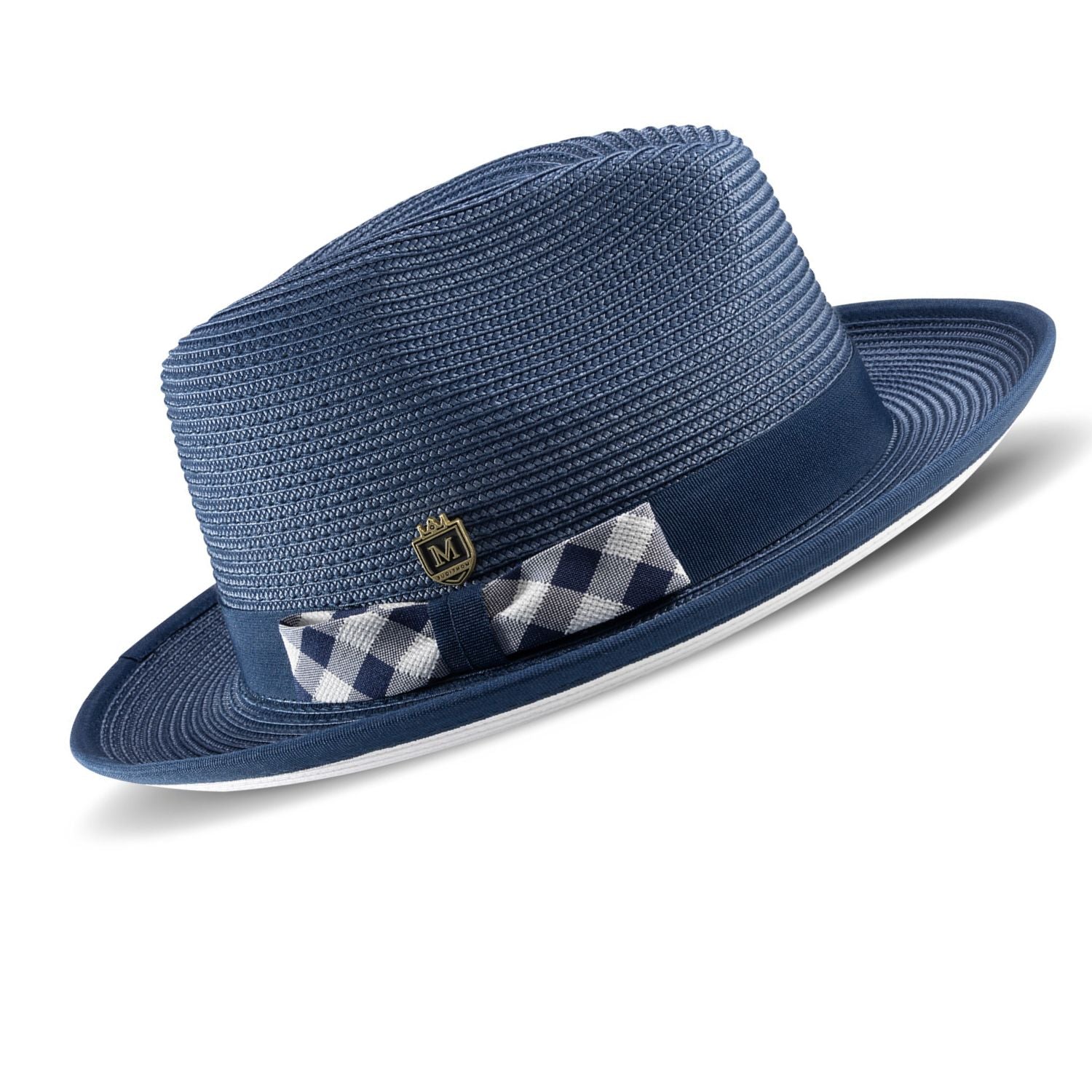 Introducing the Navy White Bottom Fedora Dress Hat with Plaid Grosgrain Ribbon, a bold expression of individual style and sophistication. This hat is a testament to the modern man's quest for distinctive fashion, blending classic patterns with a contemporary aesthetic.