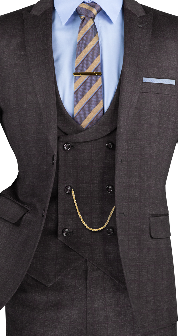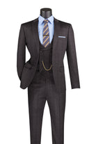 Discover the pinnacle of modern sophistication with our Chic Black Glen Plaid Slim Fit Suit, styled impeccably in the latest Vintique Collection series from Suits & More. Designed to impart an air of polished elegance, this ensemble fits seamlessly into the discerning modern man's wardrobe.