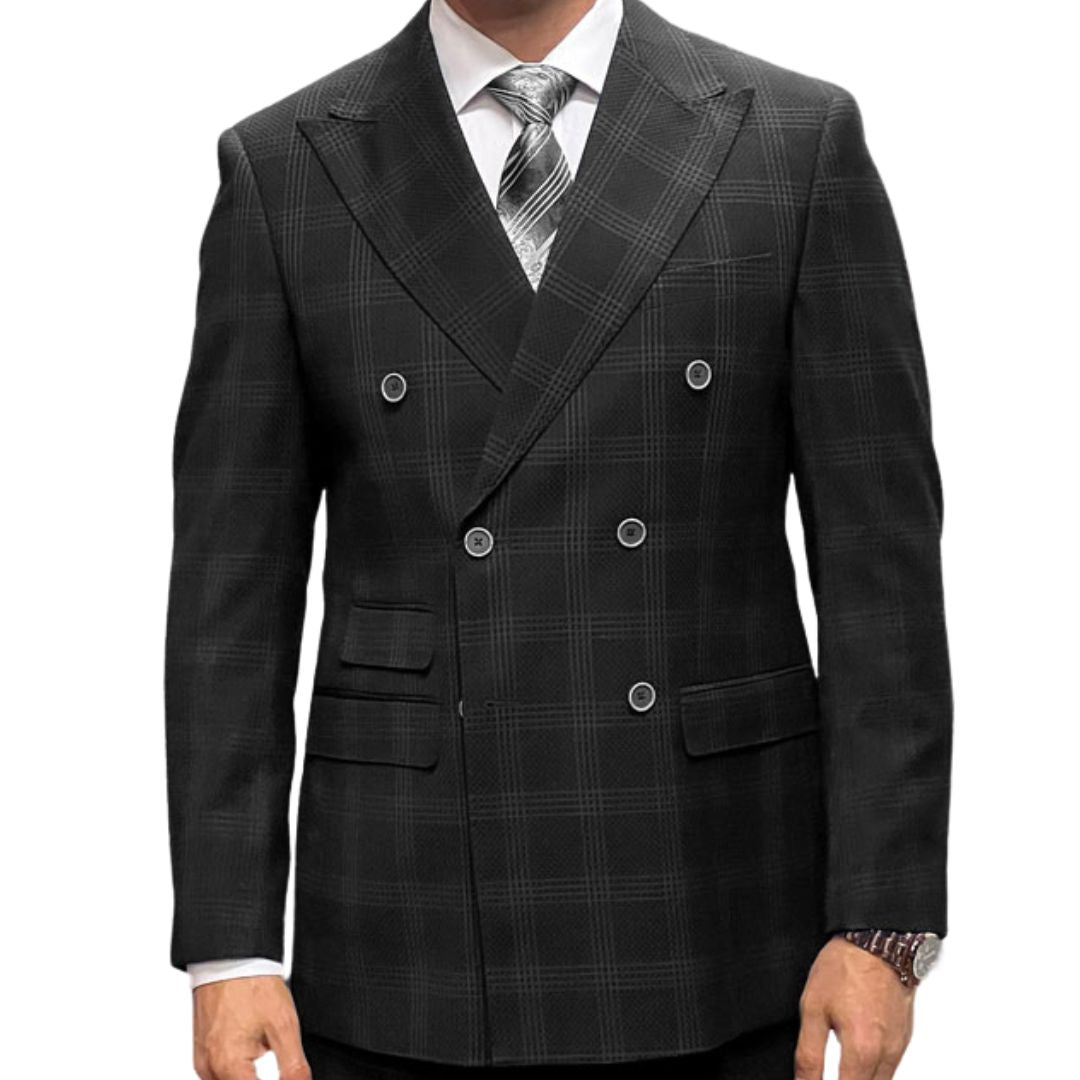 Vortigen Collection: Black 2-Piece Plaid Double-Breasted Suit