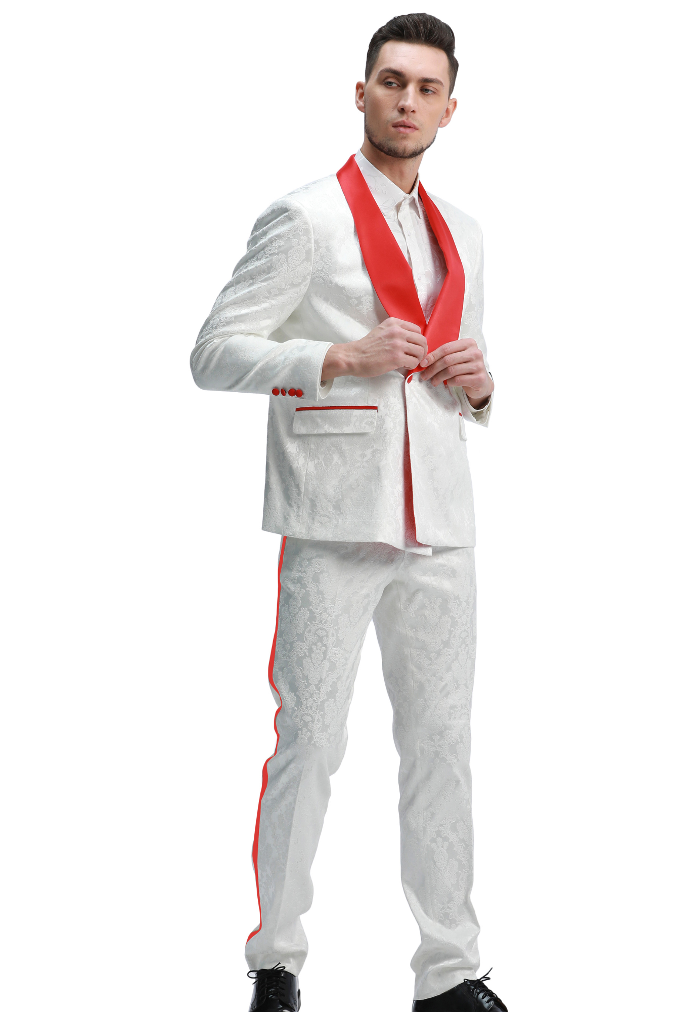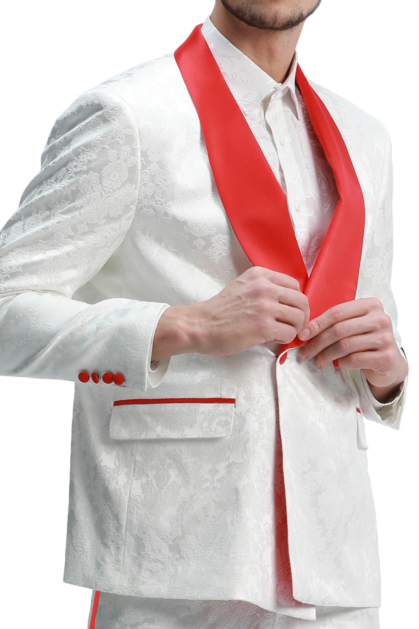 Whisper Collection: Men's 2-Piece Paisley Suit In White/Red - Slim Fit