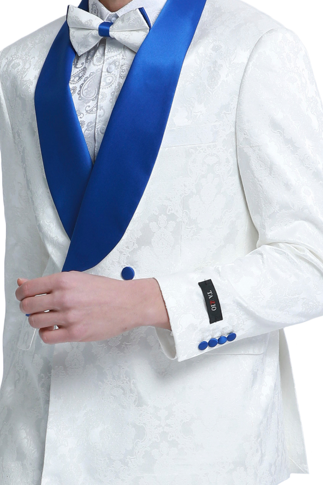 Whisper Collection: Men's 2-Piece Paisley Suit In White/Royal - Slim Fit