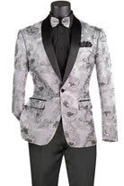 Illuminate your wardrobe with our Wilde Wear Collection's slim fit blazer in dazzling Silver. Enhanced with opulent embroidery, the single-button and side-vented design makes it a versatile showstopper.