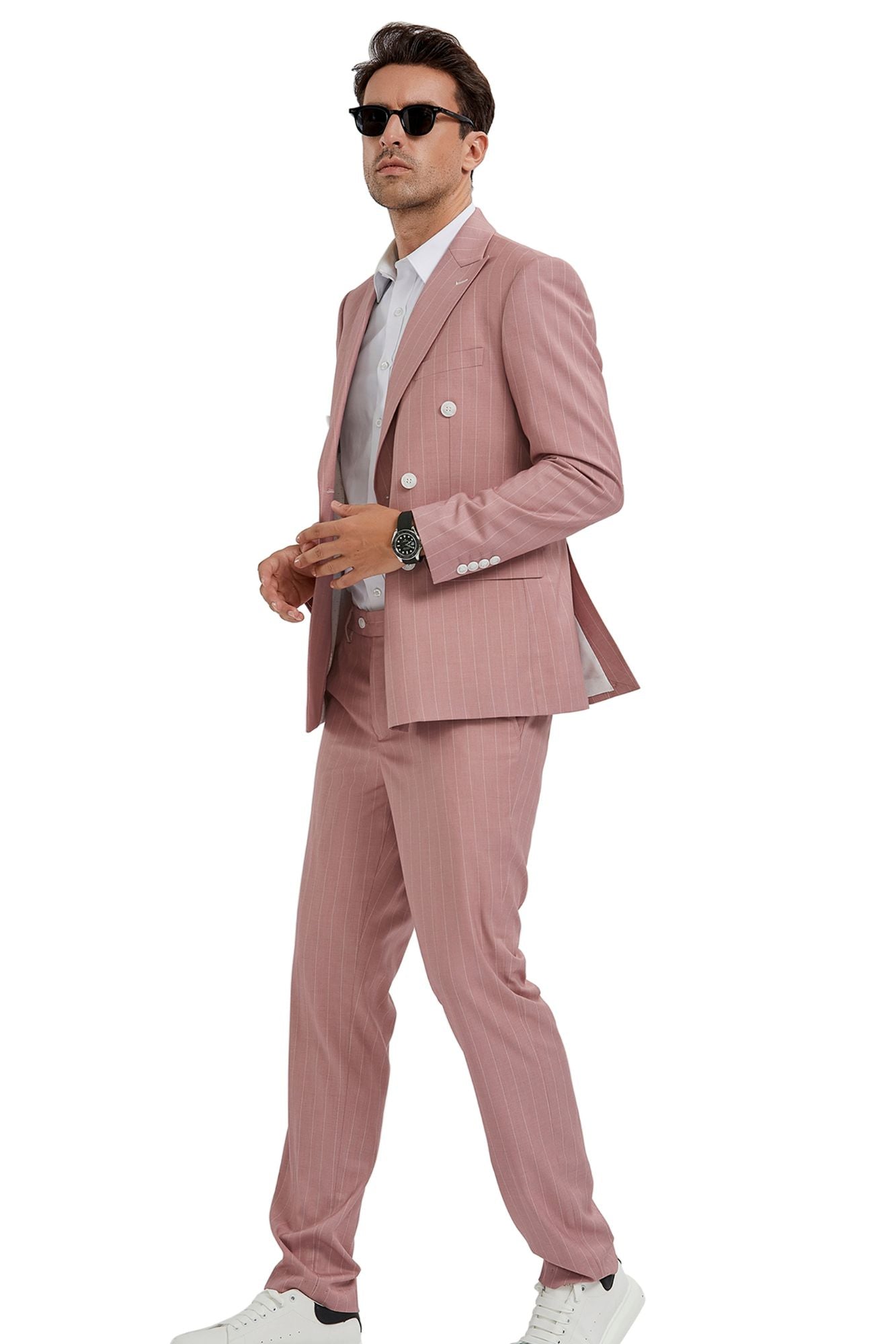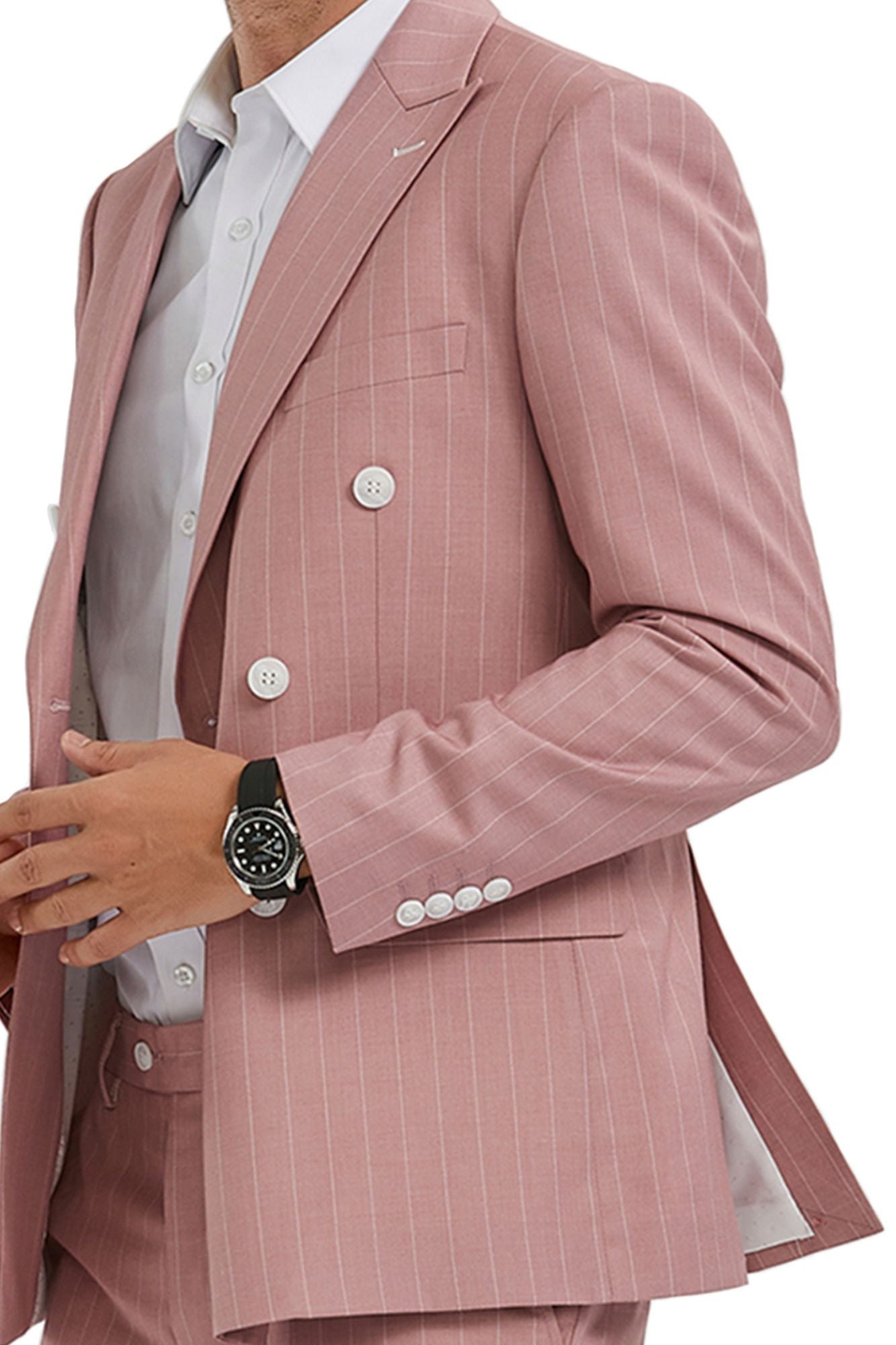 Windwalker Collection: 2-Piece Pin Stripe Slim Fit Suit For Men In Pink