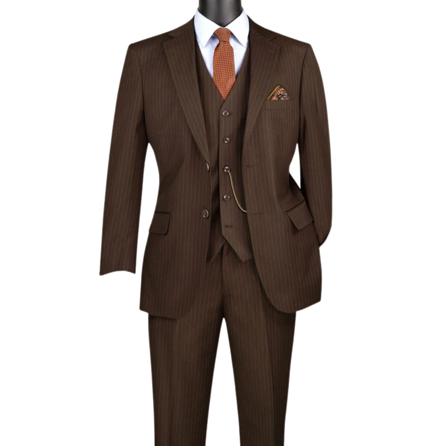 Step into a realm of grace and style with our Brown Tone-on-Tone Pinstripe Suit in a rich brown hue, a part of the coveted Zeus Zenith Collection. This luxurious wool feel ensemble promises to be a staple in the wardrobe of the contemporary gentleman. Including a finely tailored blazer, vest, and pants, it encapsulates a lifestyle of charm and elegance, making you the epitome of sophistication at any event.