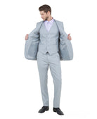 The Zodiac Signature Three-Piece Suit in light grey offers a fresh take on classic suiting. With a lighter shade that's perfect for spring and summer events, this suit combines style and comfort with a slim-fit jacket, neatly tailored pants, and a matching vest, ensuring you look effortlessly refined at any occasion.